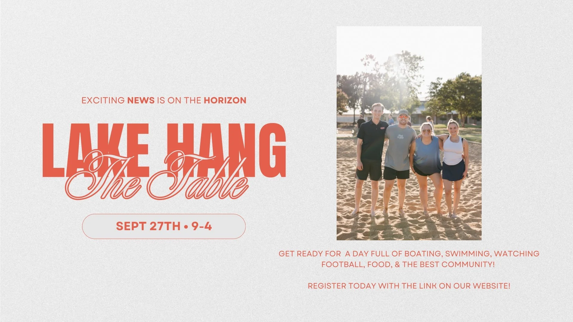 Long weekend? Cabin with your closest friends? If you like the sound of that, do not miss The Table Retreat 2026! This year we are going bigger, better, and deeper than ever before. This weekend will be full of meals together, the outdoors, laughter, and intentional time getting to connect with other young adults. This weekend only happens once a year - start 2026 off right!